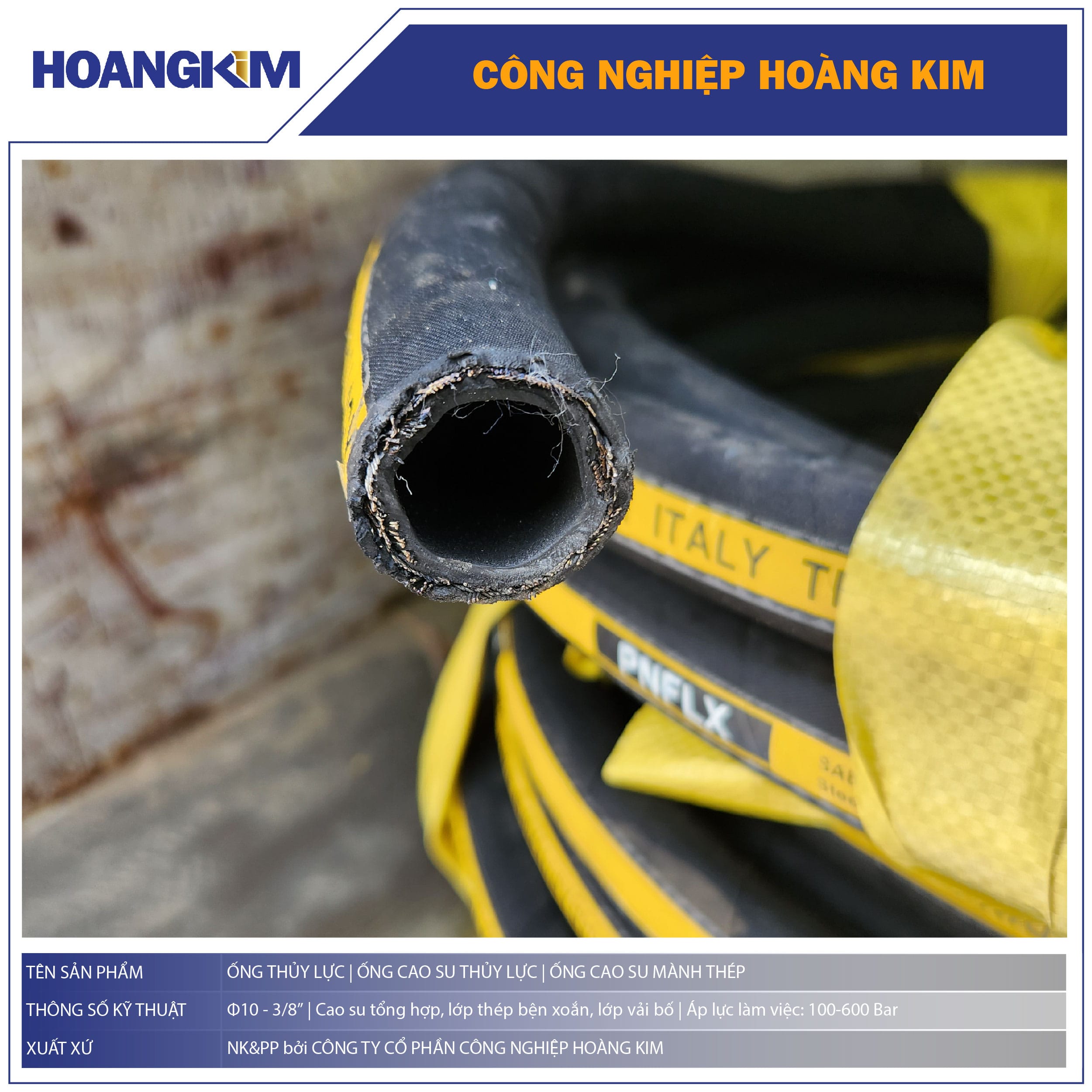Hoàng Kim cung cấp các sản phẩm ống thủy lực chất lượng, đầy đủ kích thước và tiêu chuẩn, kèm theo dịch vụ ép đầu ống theo yêu cầu chính xác của Quý khách!